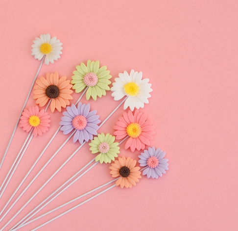 彩色树脂小雏菊洋甘菊蛋糕插件装饰插牌彩色派对用品烘焙配件 厂家直销 欢迎咨询出厂价包装:5个/套...