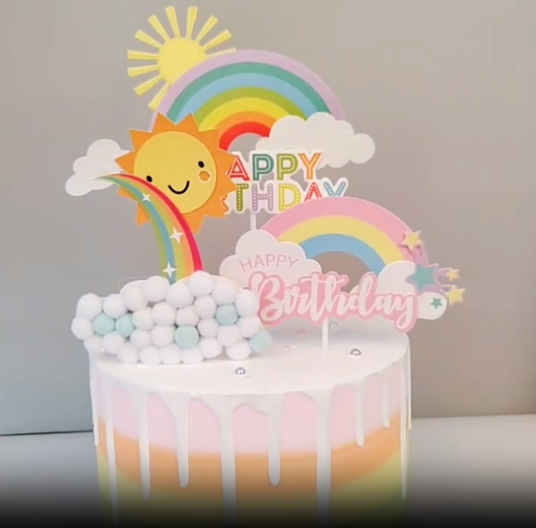 货号彩虹系列尺寸蓝-彩虹星星大插牌(零售价不低于1.4),粉-彩虹星星大插牌(零售价不低于1.4),毛球云朵彩虹大插牌(零售价不低于2.0),彩虹太阳大插牌(零售价不低于1.6)风格 彩虹系列适用节日 儿童节类别 蛋糕插件道具种类 蛋糕插牌包装 OPP袋...